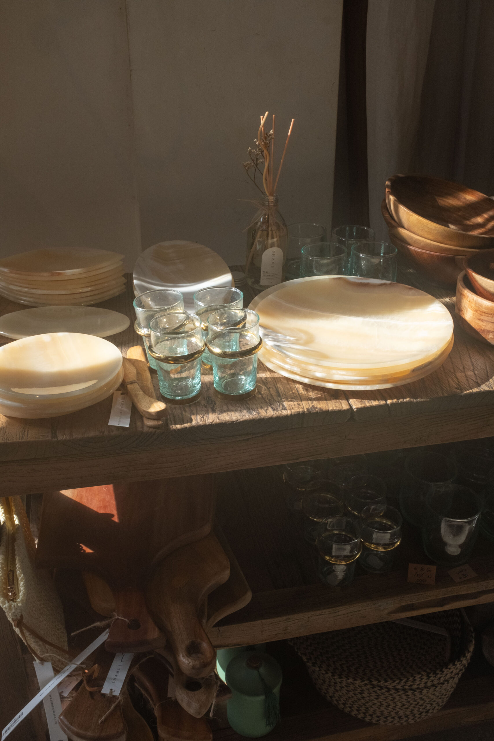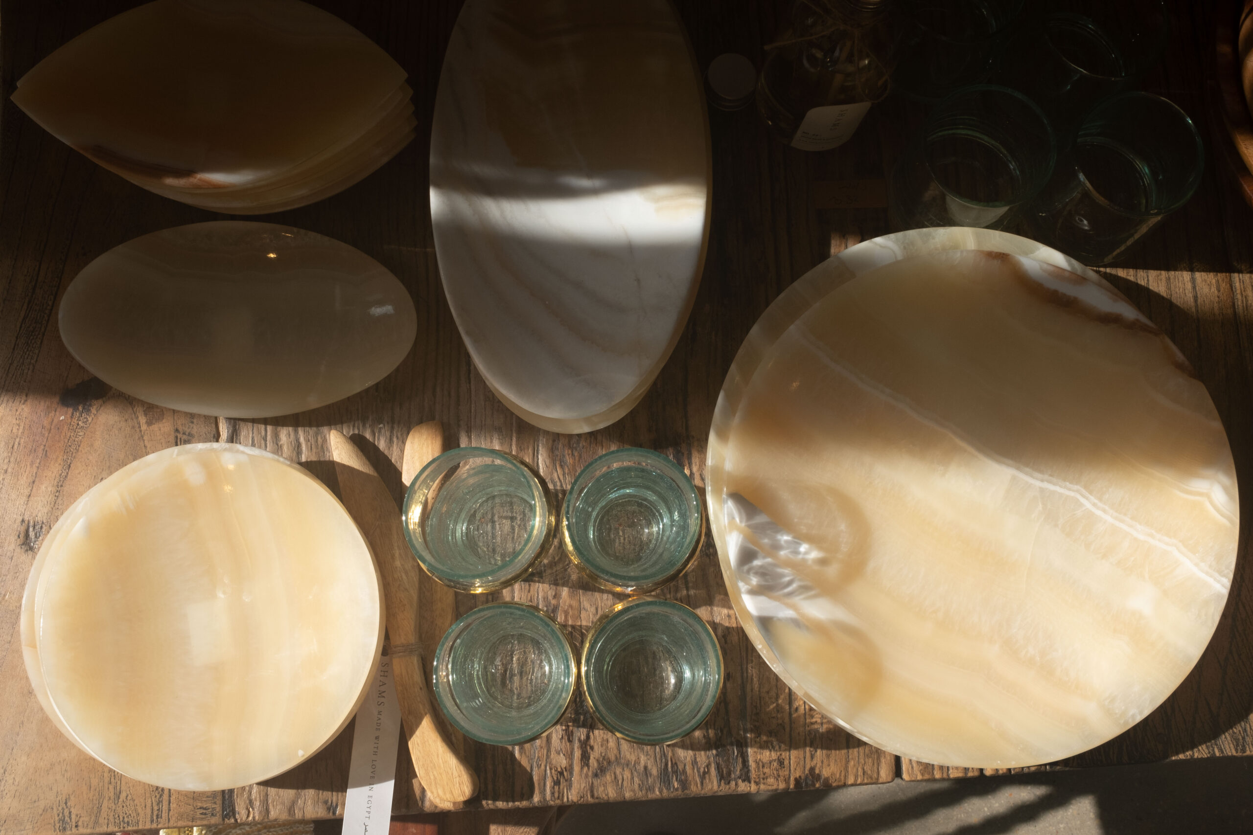Material: Alabaster stone. Care: Hand wash only.Note: Each plate is carved from the natural shape of the stone. Each piece is unique and may vary in texture. Made in Egypt