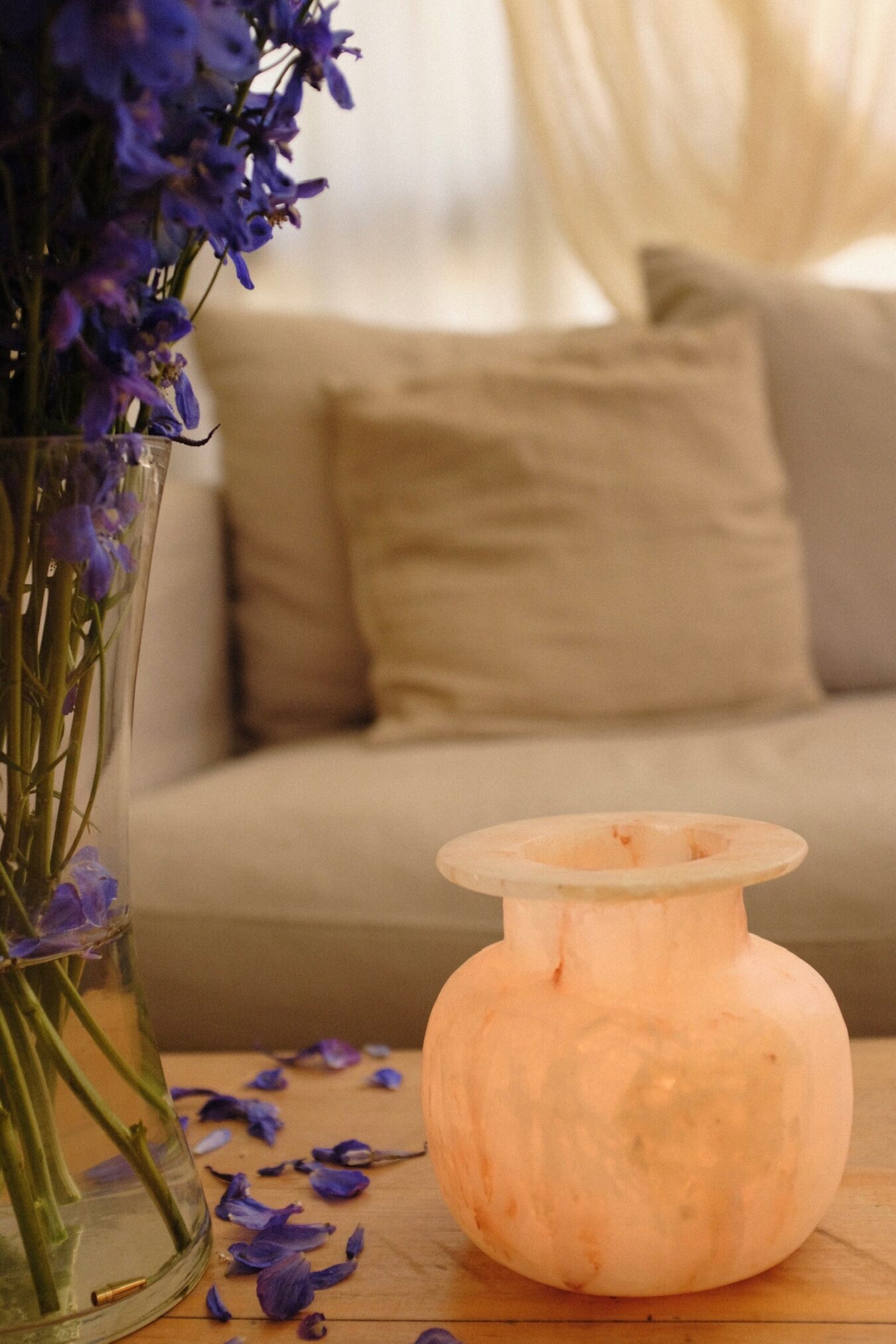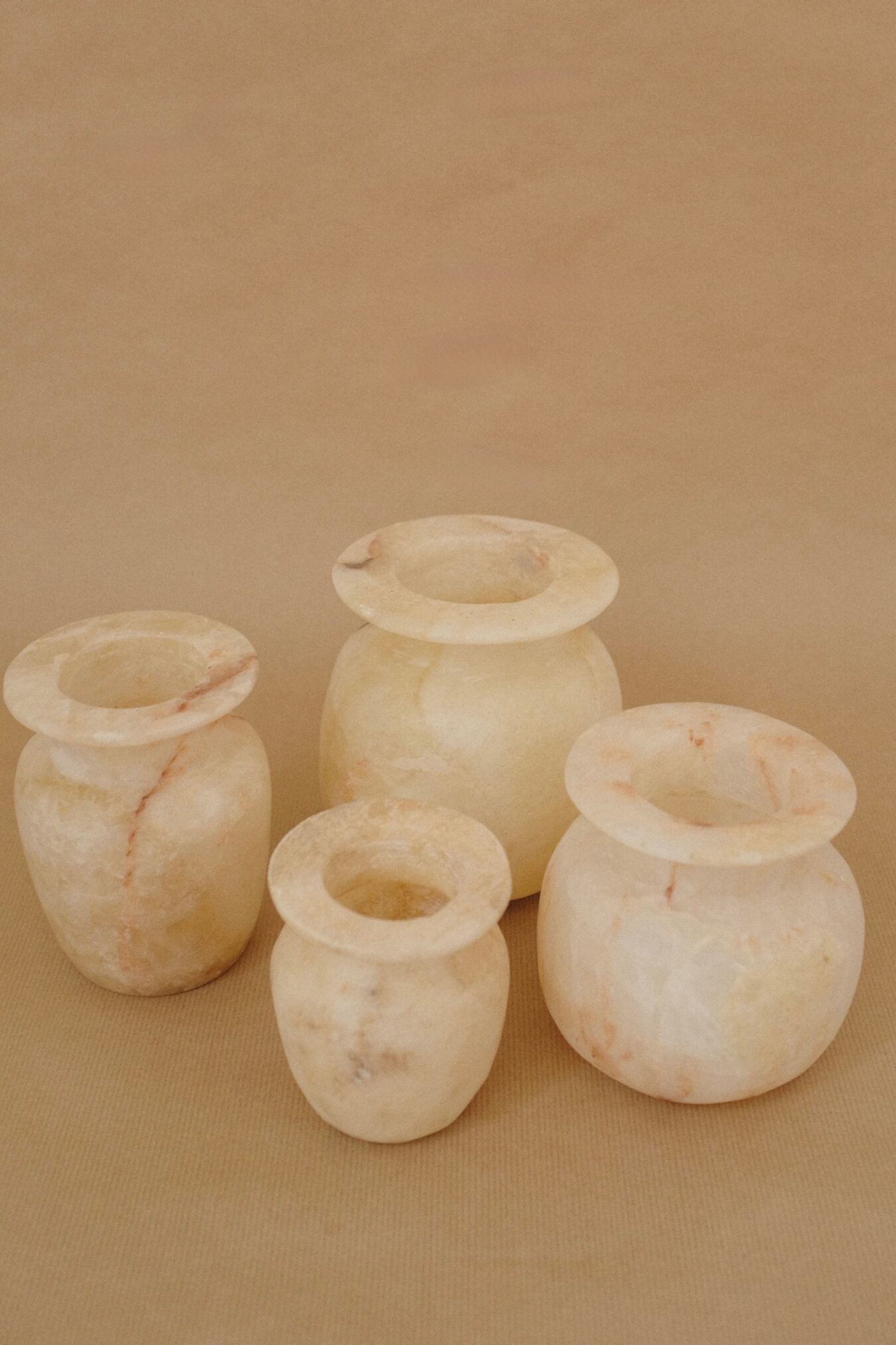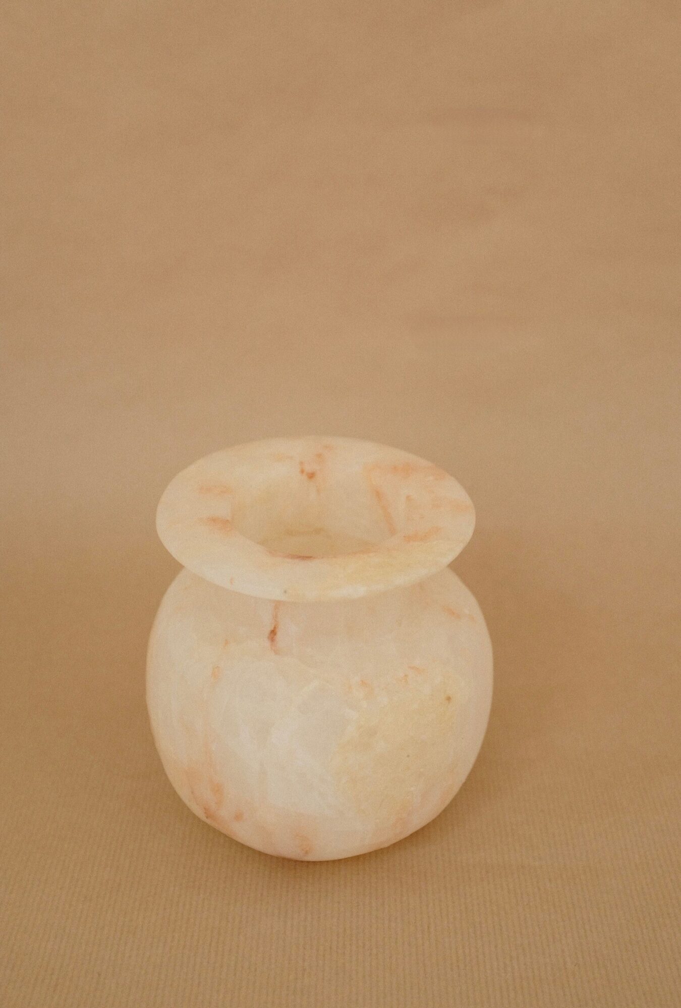 Alabaster vase, carrying a timeless elegance, featuring a stunning natural texture that highlights even more when you light a candle inside. Beautiful for dry flowers too, or as a stand-alone piece, a beautiful addition to your space. The alabaster stone has been part of Egyptian culture since the Pharaonic times.