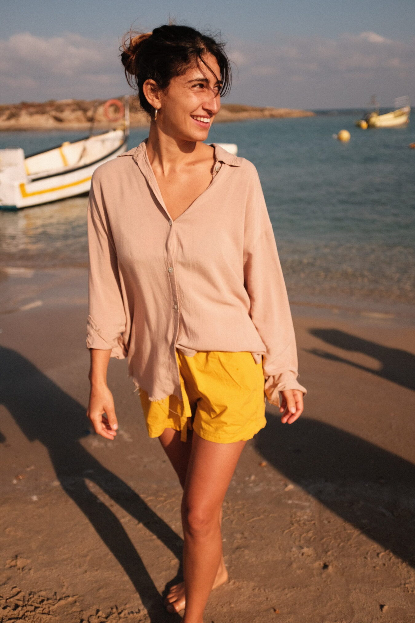 Refined cropped shirt, crafted from incredibly soft and breathable fabric. Features a relaxed fit, cropped cut, and seashell button detailing - a timeless piece. Wear it ironed for a clean look, or twist it like a scarf when storing it to create a naturally crinkled texture.